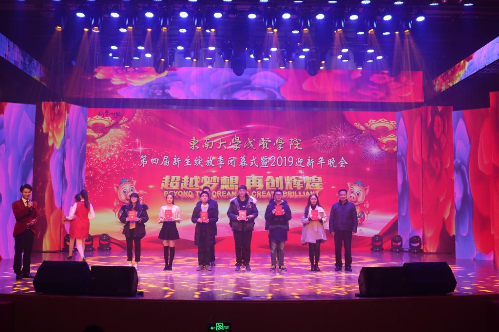 党委书记徐悦作新年致辞,他首先总结了国产视频 一年的工作内容和取得的成绩,介绍了2019年学校重点工作,并对全校师生表达了祝福寄语。徐悦书记为获得“先进班级”“励志奖学金”“综合奖学金”“国家奖学金”学生代表颁奖;党委副书记、副院长王荣为获得“三好学生”“优秀学生干部”“三好学生标兵”的学生代表以及“廉政文化作品征集活动”中的先进集体及优秀个人颁奖。