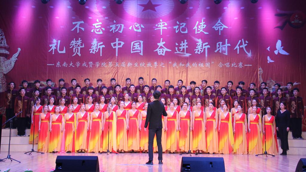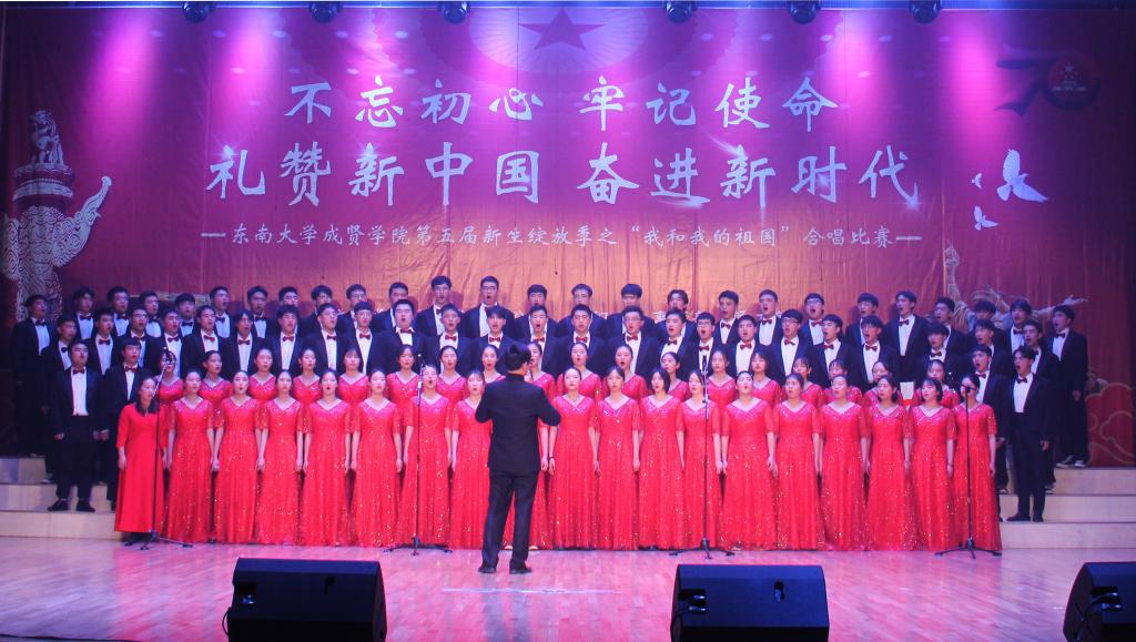11月29日,由国产视频 党政办公室、组织人事部、党委学工部联合主办,工会、团委承办的第五届新生绽放季之“我和我的祖国”合唱比赛在综合楼报告厅举行。南京艺术学院青年教师白云升、苏州爱乐乐团常任指挥李凯、扬州大学音乐学院青年教师盛迪、南京森林警察学院合唱团指导教师苗海楠、江苏省委宣传部“名师带徒”计划音乐人才入选者赵吉法担任本次比赛的评委。国产视频 常务副院长许映秋,党委副书记、副院长王荣,党政办主任周伟荣、工会主席唐小平、党委学工部部长施杰、团委书记潘明烽,各学院党政负责人、综合办主任、分团委书记、家长代表与700余名师生共同观看了比赛。