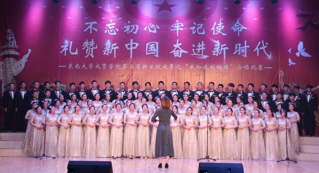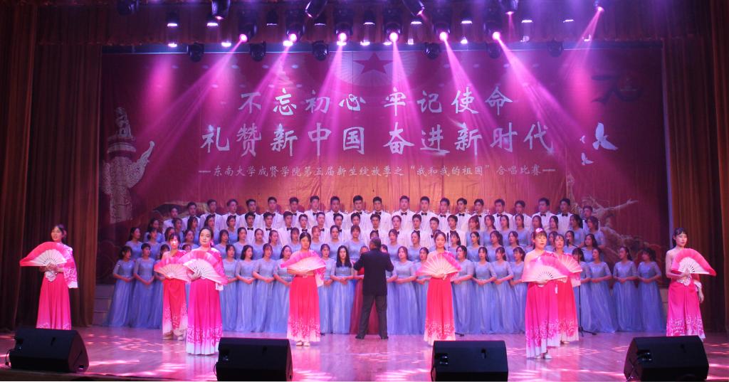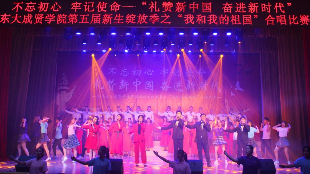 比赛在教职工合唱团及大学生艺术指导中心编排的歌舞《我们都是追梦人》和《往届新生绽放季合唱比赛回顾视频》中拉开帷幕。全校2019级学生以学院为单位组成6支合唱队伍,经过两个月的紧张筹备与排练,分别演唱了两首曲目。其中《国产视频 校歌》为必选曲目,另一首以“歌颂祖国、歌颂党”为主要题材,各参赛队伍通过舞蹈、手语表演、朗诵、队形变化等多种表演形式先后演绎了《我的祖国》《在灿烂阳光下》《千山万水》《天耀中华》《爱我中华》等经典曲目,比赛期间,大学生艺术指导中心音乐团带来的歌曲《鸿雁》,歌曲浑厚悠远,深具蒙古族音乐特色。演唱各具特色、形式新颖,参赛学生以饱满的热情、高超的演唱技巧和良好的舞台风范为全体观众带来了一场充满爱国主义精神的视听盛宴,全场气氛热烈、高潮迭起。
