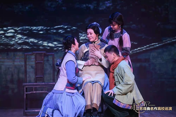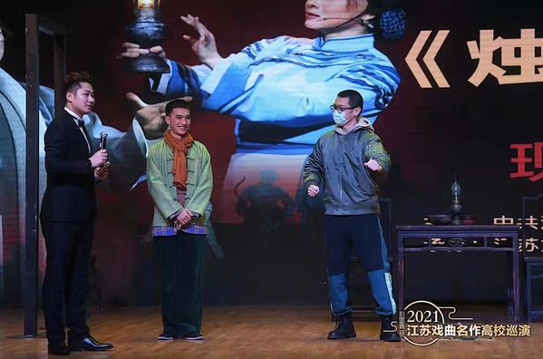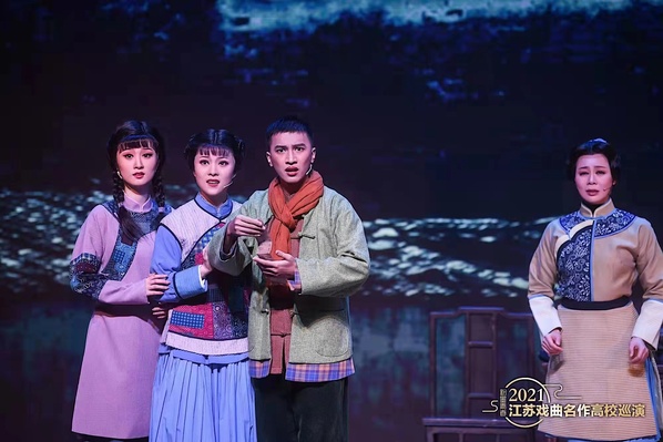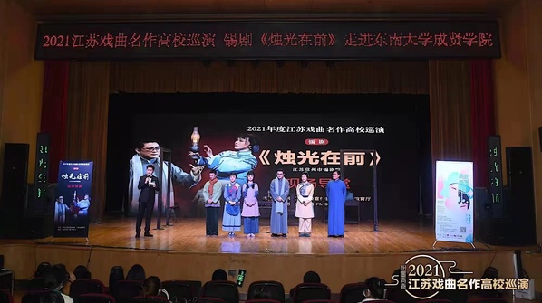 12月16日晚,由省委宣传部、省教育厅主办、校团委大学生艺术指导中心承办,常州市锡剧院创排演出的“2021年度江苏戏曲名作高校巡演”锡剧党课《烛光在前》在国产视频 综合楼报告厅举办。