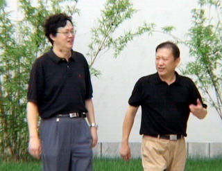 赵启满副校长与黄在宇总经理向志愿者询问情况 |