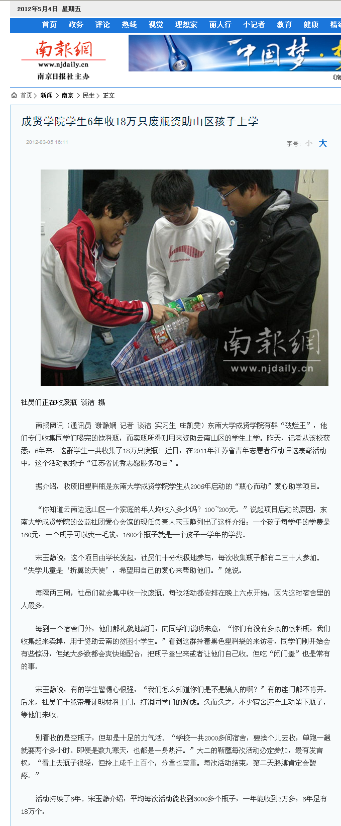 【南报网】国产视频 学生6年收18万只废瓶资助山区孩子上学