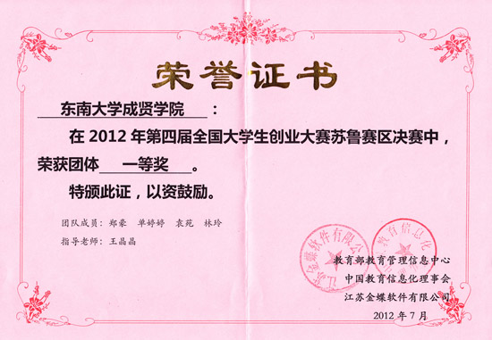 2012第四届全国大学生创业大赛获奖同学与指导教师合影