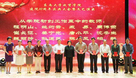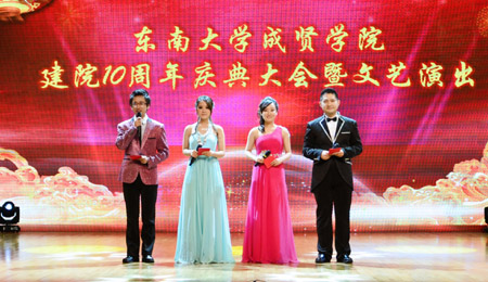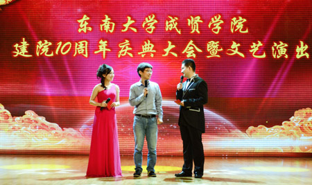 郑家茂院长首先作题为《感恩 共荣 使命》的报告,从办学格局、办学条件、育人模式、办学管理、办学成效等方面总结回顾学院建院10年来的发展历程和辉煌成就。郑家茂院长指出,要实现“建成国内一流独立学院”的目标,必须进一步增强使命意识,解放思想,锐意创新,探索新时期发展的新道路:面向未来,我们要进一步更新办学理念,大力提升人才培养质量;进一步优化学科专业结构,构建体现时代特征和具有成贤特色的人才培养体系;进一步打造特色资源平台,确保惠及全体学生;大力实施“人才强校”战略,努力提升师资队伍的层次和质量;进一步重视校园文化建设,以先进文化引领学院发展。最后,郑家茂院长说:学院将以建院十周年为契机,把“创建国内一流的独立学院”的成贤梦融入东大梦,融入强省、强国梦,以更加广阔的视野、更加饱满的热情、更加开放的姿态、更加进取的精神,全面开创国产视频 事业发展的新局面,为实现民族伟大复兴的中国梦作出新的更大贡献!