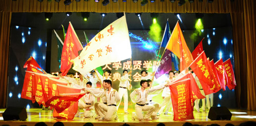 文艺演出分为喜庆成贤、美丽成贤、成贤眷恋三大篇章,演出气势恢宏,节目精彩纷呈,给观众带来了一场艺术盛宴。2005级毕业生滕飞创作的诗歌《青春成贤 风华成贤》由10位优秀毕业生和在校生代表共同朗诵,将他们对母校浓烈的依恋和赞美之情表达得淋漓尽致。崔长征、王卉老师演唱的歌曲《国产视频 ,我永远的眷念》,是由崔长征老师自创,歌曲饱含对国产视频 的隽永深情,也寄托了对学院美好未来的祝福。精彩纷呈的节目表演引起现场观众的强烈共鸣,或激情澎湃,或感动落泪,或会心一笑,雷动的掌声一次次回响在报告厅内。