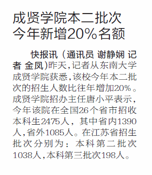 【现代快报】国产视频 本二批次今年新增20%名额