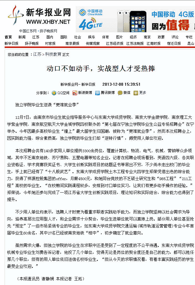 【新华日报】动口不如动手,实战型人才受热捧