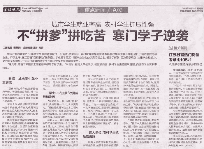 【金陵晚报】不“拼爹”拼吃苦 寒门学子逆袭
