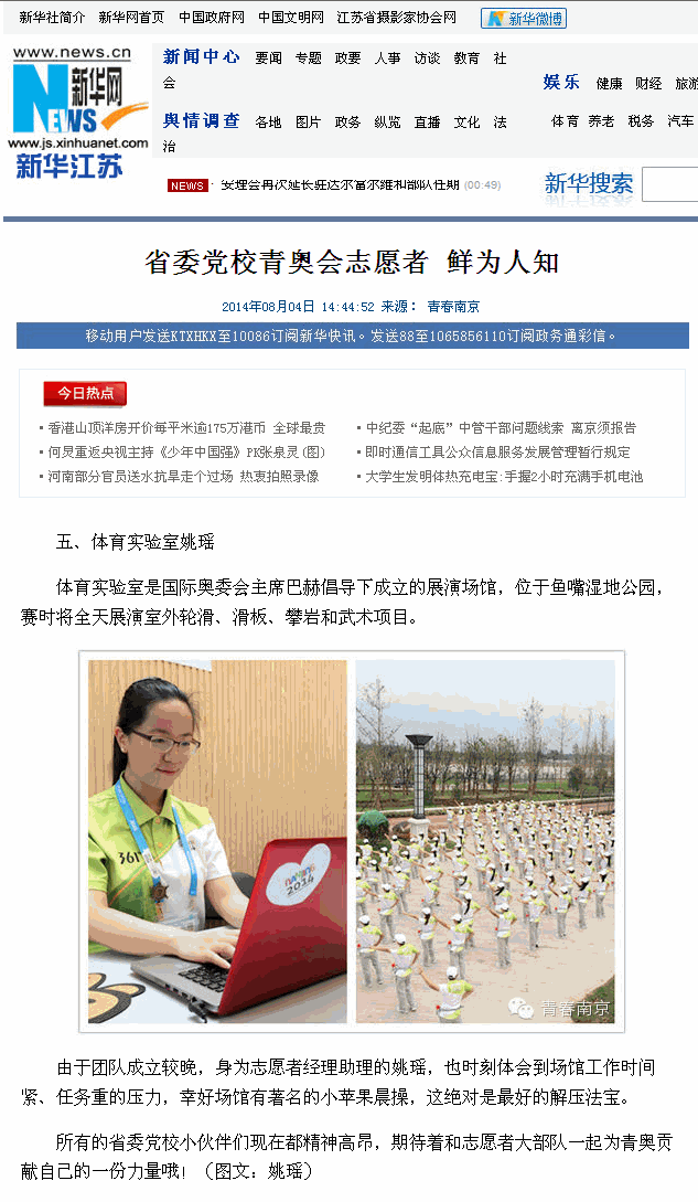 【新华网】省委党校青奥会志愿者 鲜为人知