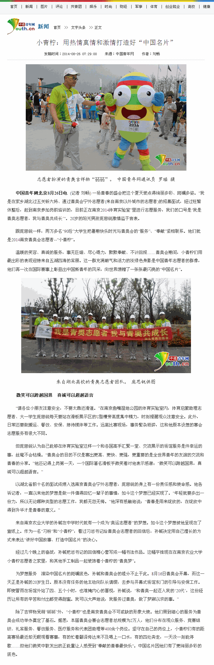 【中国青年网】小青柠:用热情真情和激情打造好“中国名片”