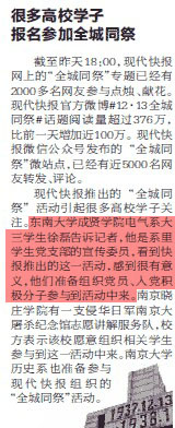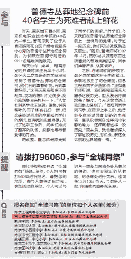 【现代快报】我院电气系学生参加“12.13全城同祭”活动