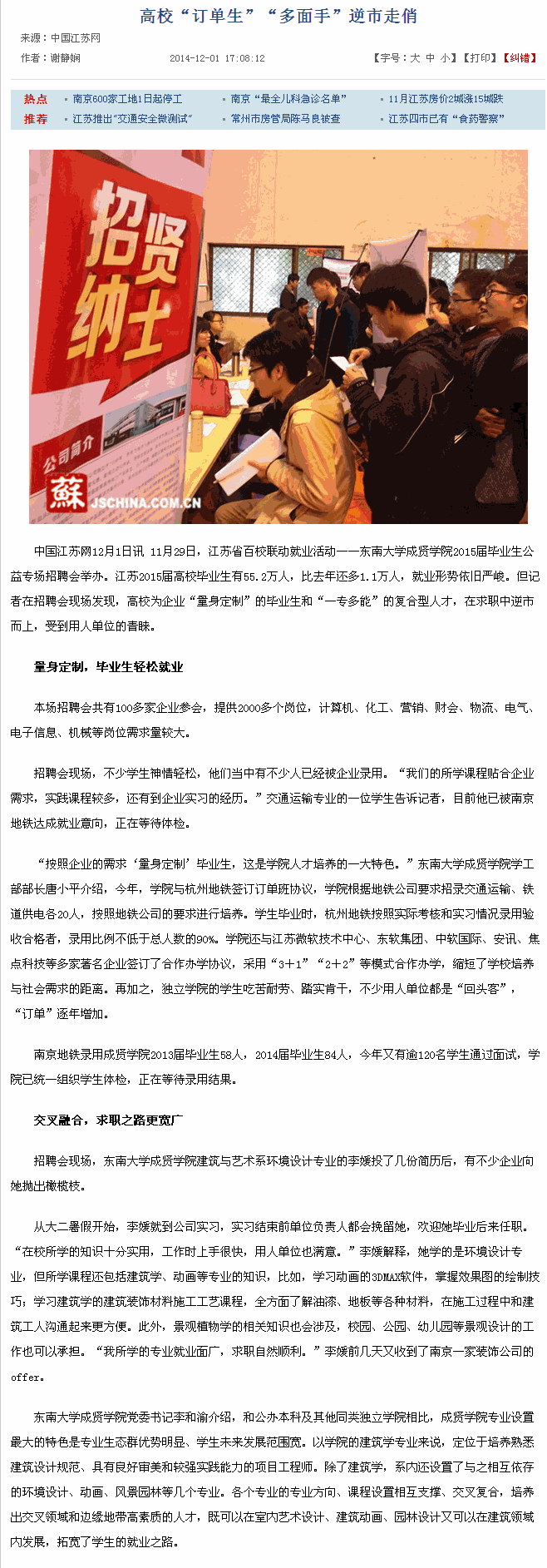 【中国江苏网】高校“订单生”“多面手”逆市走俏