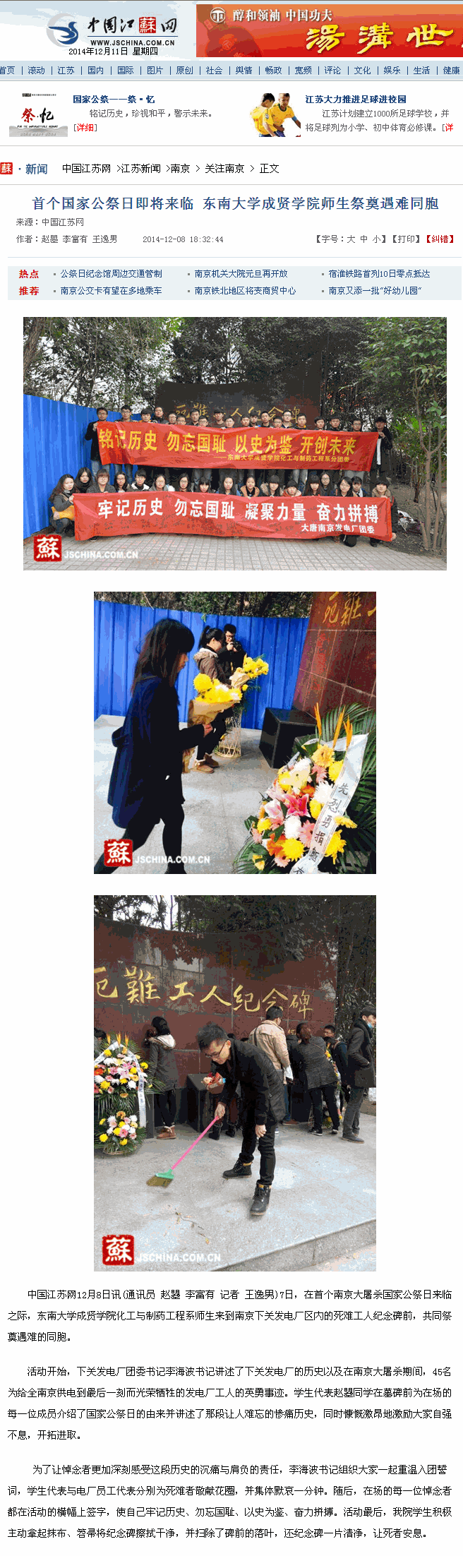 【中国江苏网】首个国家公祭日即将来临 国产视频 师生祭奠遇难同胞