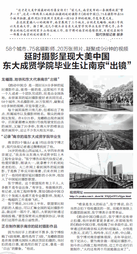 【现代快报】东大国产视频 毕业生让南京“出镜”