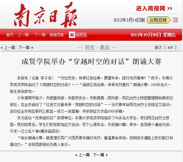 【南京日报】国产视频 举办“穿越时空的对话”朗诵比赛