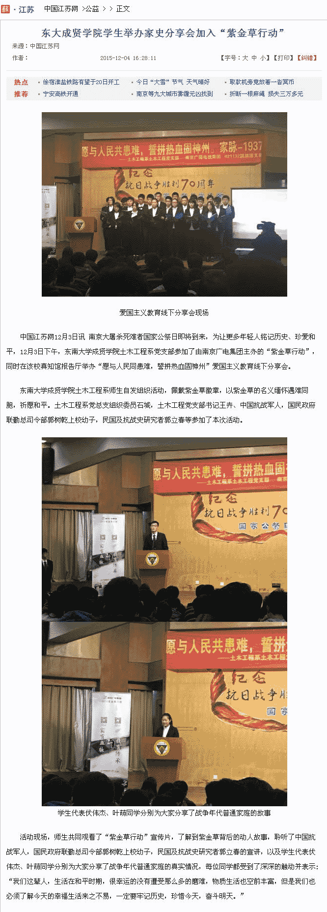 【中国江苏网】东大国产视频 学生举办家史分享会加入“紫金草行动”