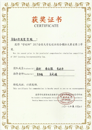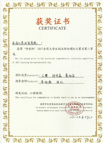 5月13日,在江苏大学举行的2017“学创杯”全国大学生创业综合模拟大赛江苏省本科组选拔赛中,国产视频 3支代表队顽强拼搏,荣获两项江苏省二等奖的优异成绩。