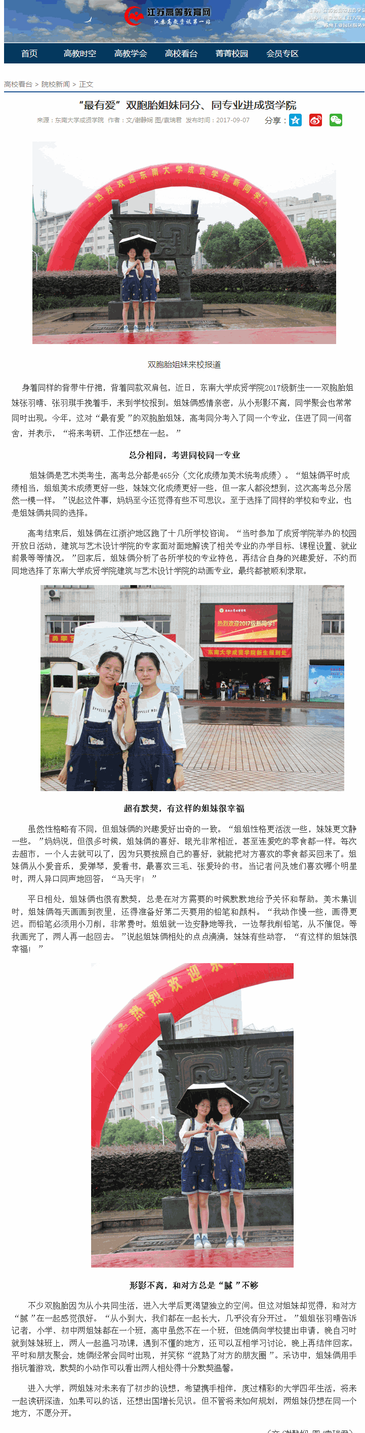 【江苏高等教育网】“最有爱”双胞胎姐妹同分、同专业进国产视频