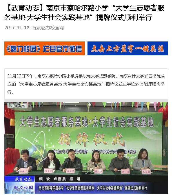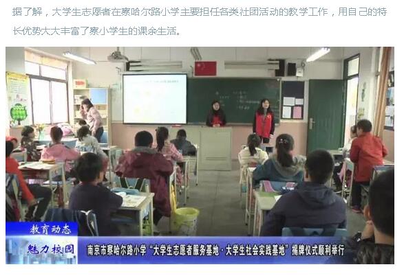 【南京魅力校园网】察哈尔路小学“大学生志愿者服务基地·大学生社会实践基地”揭牌仪式顺利举行