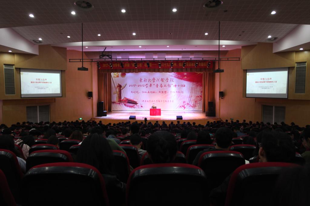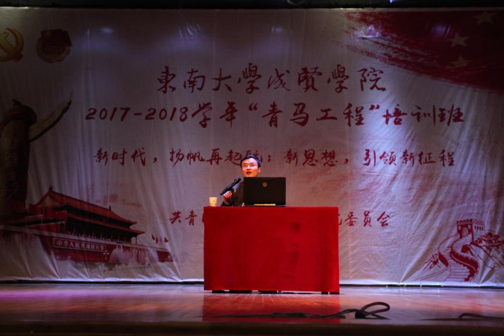为推进共青团改革、加强基层团支部建设,4月13日晚,由校团委主办的2017-2018学年第二学期“青马工程”培训班在综合楼报告厅举行,国产视频 团委副书记杨文燮作题为“学习贯彻党的十九大精神,深入推进共青团改革和工作”专题报告,精英班、大骨班全体成员及部分新秀班成员共700多人聆听了报告。