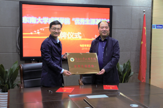 4月24日、25日,国产视频 党委副书记、副院长王荣,电子与计算机工程学院党总支书记丁江,学生处副处长苏力及镇江招生组老师前往江苏省丹阳高级中学、江苏省大港中学、句容市第三中学进行座谈交流,并与三所中学签订合作协议,举行了“优秀生源基地”挂牌仪式。