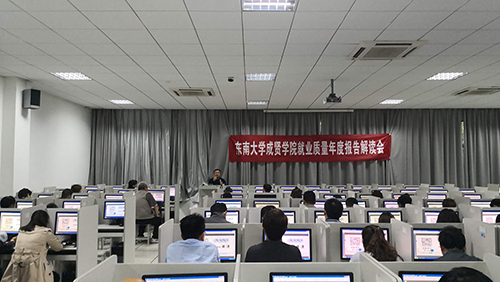解读会开始前,唐小平处长首先代表学校对蒋部长的到来表示热烈欢迎,并介绍国产视频 高度重视毕业生的调查工作,自2014年起启动此项工作,2016年国产视频 与江苏省招生就业指导服务中心合作调查、编撰毕业生就业质量年度报告。