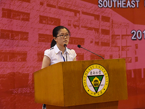老生代表2016级工程造价专业1班寿梦倩与新生代表2018级工商管理类专业田震宇分别发言,表达了对新生的热烈欢迎和对大学生活的美好期盼。