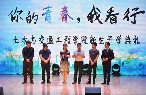 9月26日,国产视频 土木与交通工程学院在大学生活动中心313成功举办主题为“你的青春,我看行”2018级新生开学典礼。学校党委书记徐悦,党委副书记、副院长王荣,学生处处长唐小平,土木与交通工程学院院长郭正兴以及其他院系党总支领导、优秀校友代表、合作单位负责人,土木与交通工程学院全体教职工,2018级新生和部分新生家长共计600余人参加了此次活动。