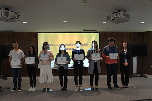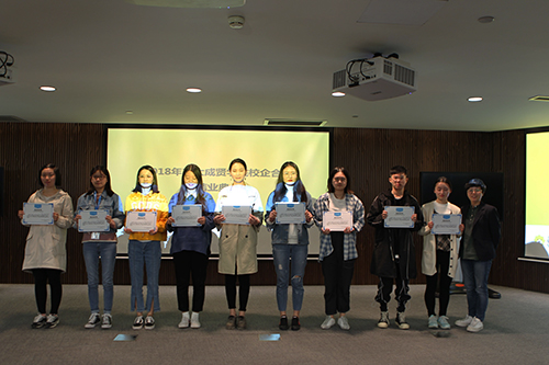 最后,苏宁财务共享中心陈礼总监、曹红副总监、陆峰经理和其他部门经理为本次参加校企合作的38名同学颁发结业证书,表彰了张悦蔚等11名表现突出的同学并颁发优秀实习生证书。同时,优秀实习生代表张悦蔚和优秀往届留用学生代表刘奕上台发表感言。