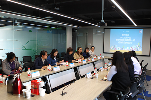 戚啸艳院长一行首先参观了苏宁财务共享中心,学习交流了财务共享中心的运作,如各种单据如何审核、扫描、传递、装订、分装、存储及归档,开票机器人、报税机器人、合同机器人等财务机器人的基本功能和工作原理等,并与财务共享中心总监陈礼、副总监曹红及部分部门经理就进一步校企深度合作内容和模式展开研讨,共同探讨企业对人才培养的需求、人才培养方案的修订、校企合作模式的创新等。
