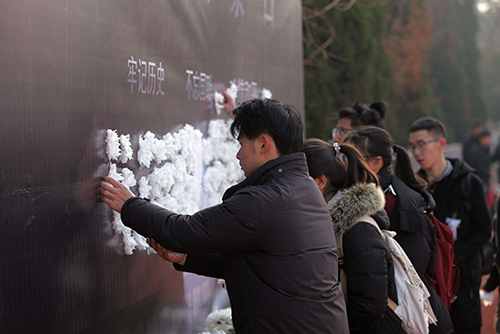 12月13日,是第五个南京大屠杀死难者国家公祭日。国产视频 校团委组织各级学生组织开展了“勿忘国耻,圆梦中华”国家公祭日系列主题宣传教育活动,校团委书记、人武部部长潘明烽,部分学院分团委书记、辅导员,本届国旗团支部(16建筑学1团支部)全体成员以及各级团学组织学生骨干代表共280余人参加了活动。