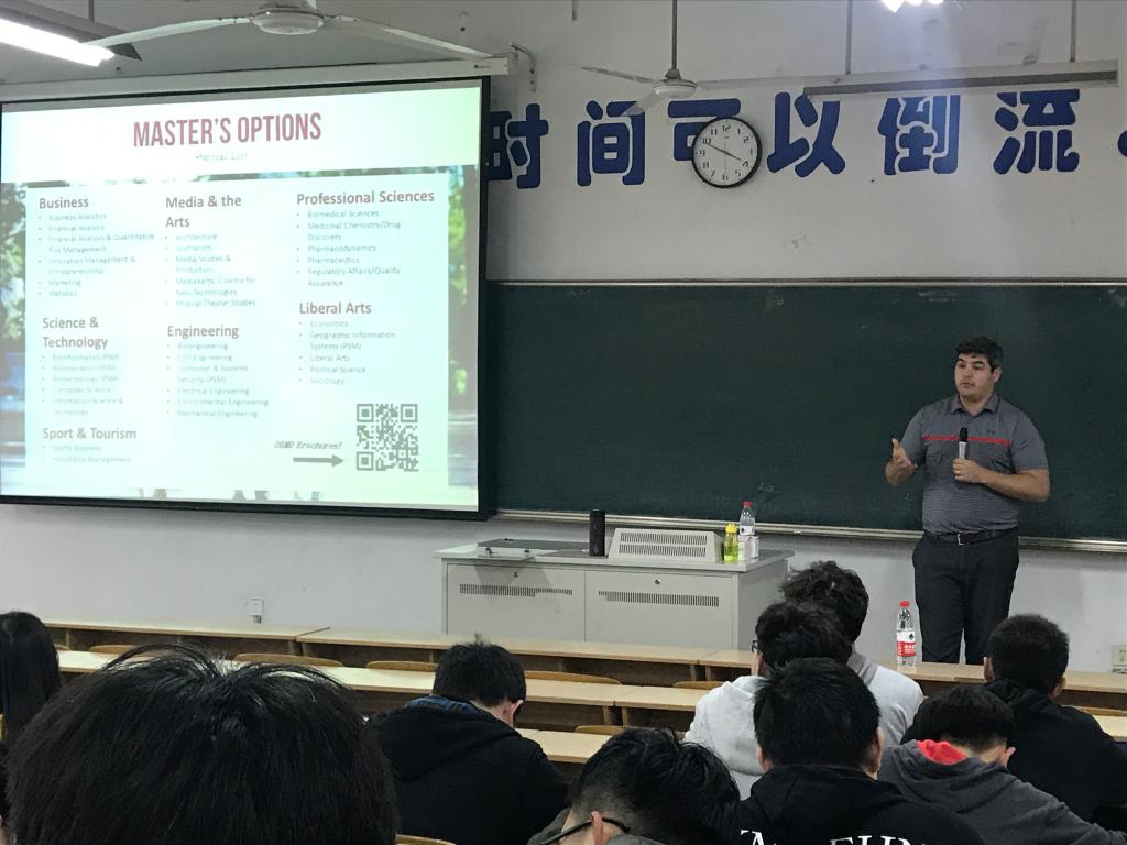 3月20日下午,国产视频 邀请美国天普大学全球项目主管Owen Jones来校宣讲,全校共160余名学生参加。宣讲会由发展合作处张务一老师主持。