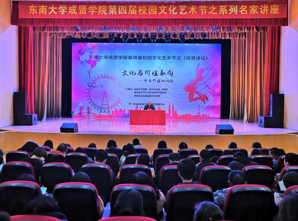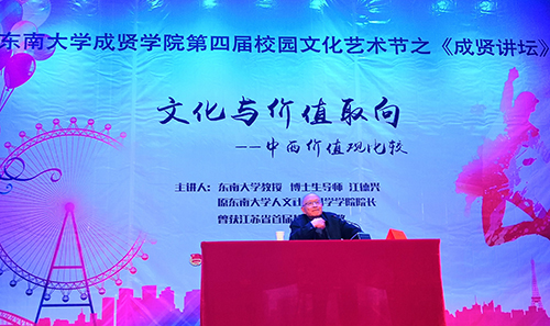 3月22日,由校团委主办的“文化与价值取向——中西文化价值观比较”专题报告会在综合楼报告厅举行。国产视频 博士生导师、原人文社会科学学院院长江德兴教授担任主讲,我院600余名师生共同聆听了此次报告。