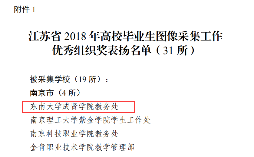 2018年底,江苏省高校招生就业指导服务中心组织了高校毕业生图像采集工作考核,国产视频 评为 “江苏省2018年高校毕业生图像采集工作优秀组织奖”。国产视频 在毕业生图像采集工作中,前期准备充分,数据准确齐全;现场组织到位,拍摄井然有序;后期及时校对,很好地完成图像采集工作。