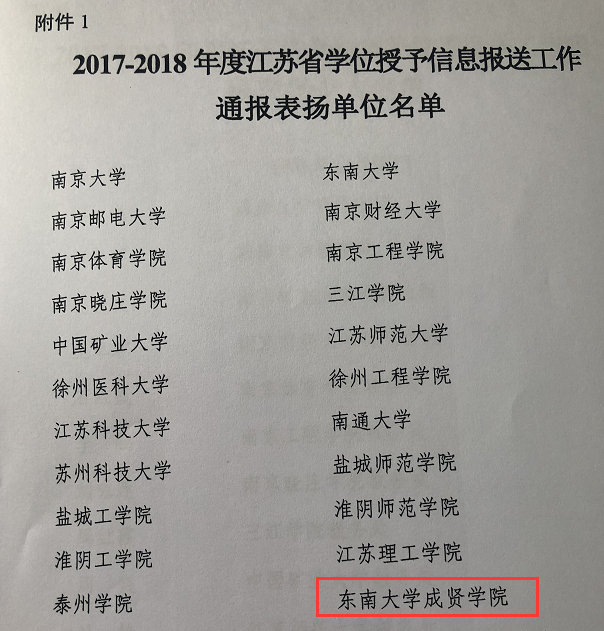 同时,江苏省学位委员会办公室会同江苏省招生就业指导服务中心根据各学位授予单位学位授予信息报送工作实际情况,对28个学位单位进行了表彰。国产视频 重视学位授予信息报送工作,学位授予管理过程规范严格,确保了学位授予信息数据报送的及时性、准确性、完整性和规范性,此次获评“2017-2018年度江苏省学位授予信息报送工作通报表扬单位”。