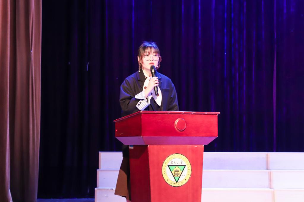 2016级建筑学1班冯康宁同学代表2018年度省级先进班集体作经验介绍:“作为省先进班集体,一直本着“笃行、好学、求新、力诚”的班级建设理念,既要为荣誉感到光荣,又要因责任懂得担当,一心一意跟党走,牢记使命,关怀社会,争做‘四个’青年,不悔青春,不负韶华。”