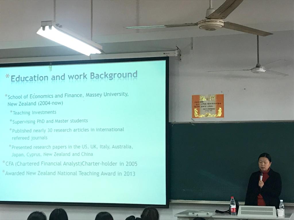 4月1日下午,新西兰梅西大学经济与金融学院金融学副教授迟晶博士访问国产视频 并在文昌院203教室做了学生项目专场宣讲会,200名学生现场聆听。宣讲会由发展合作处张务一老师主持。