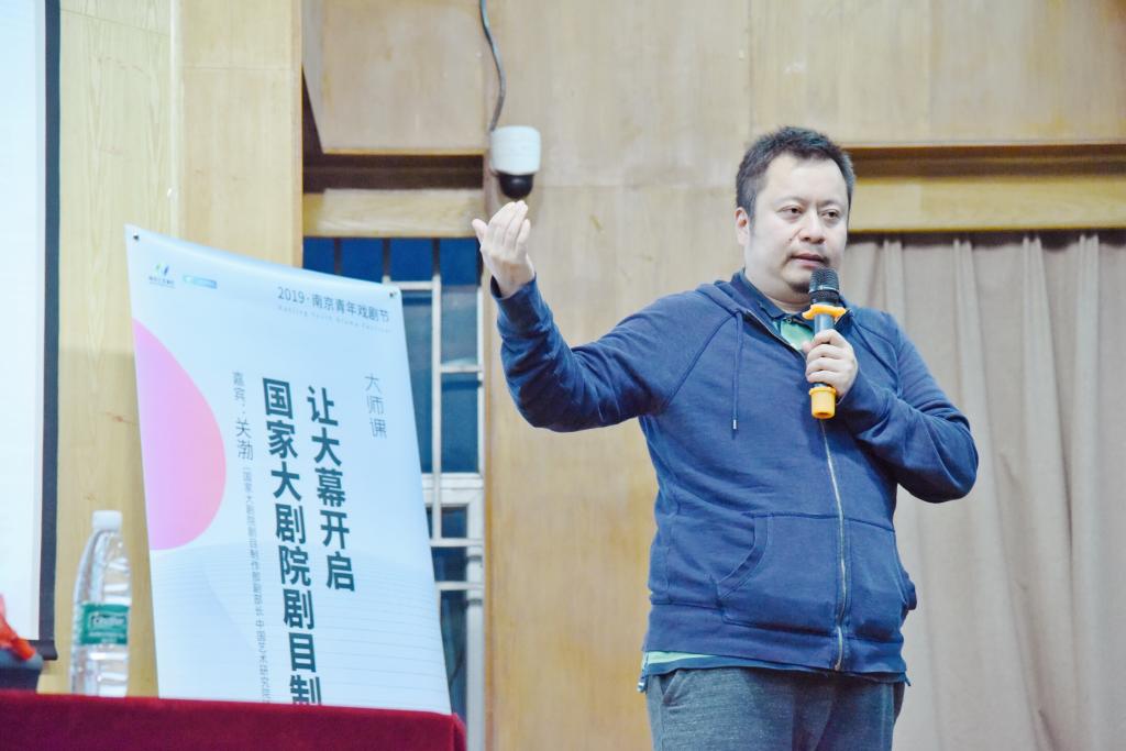 4月19日,由江北新区党工委宣传部、南京蓝色天际文化传媒有限公司主办,国产视频 大学生艺术指导中心承办的“2019南京青年戏剧节”之《让大幕开启》戏剧大师课在真知馆报告厅举行。国家大剧院剧目制作部副部长、中国艺术研究院硕士导师关渤担任主讲,300余名师生现场聆听了此次讲座。