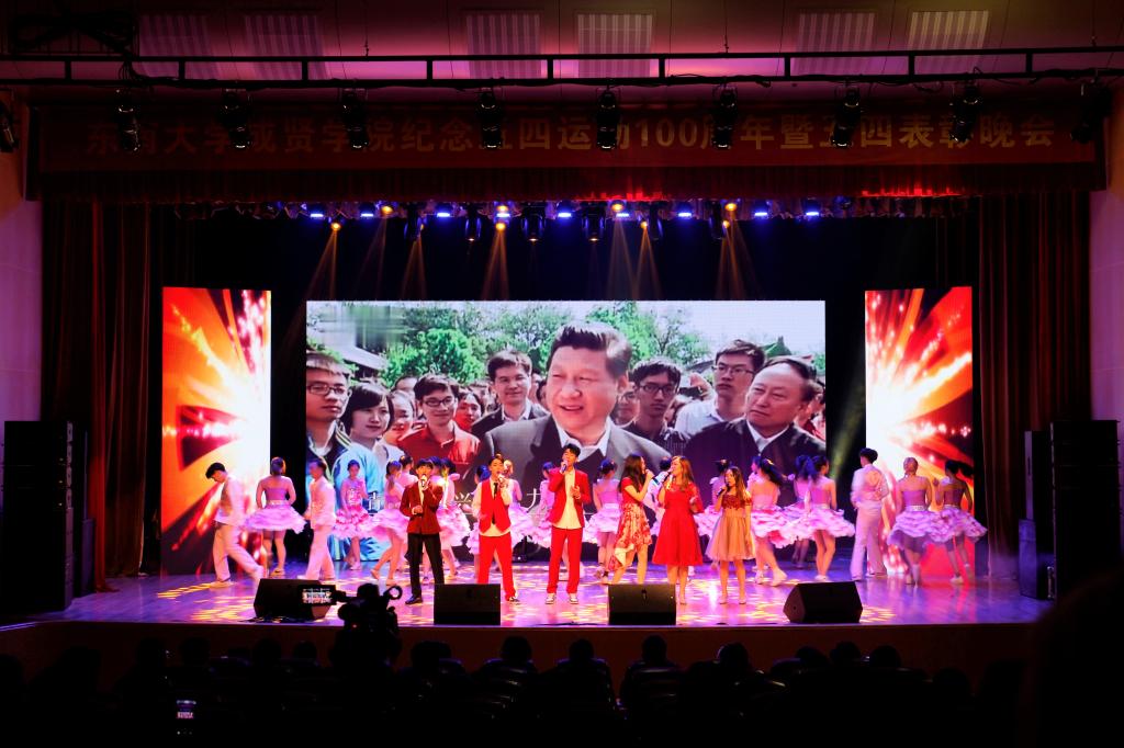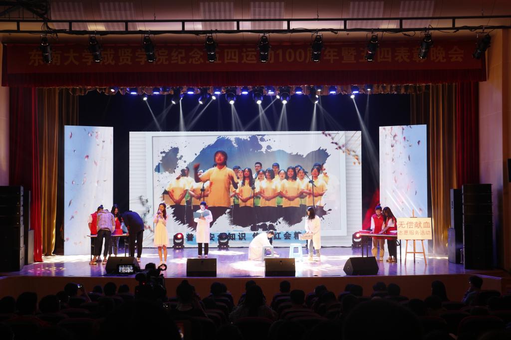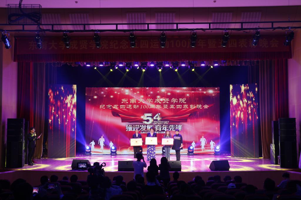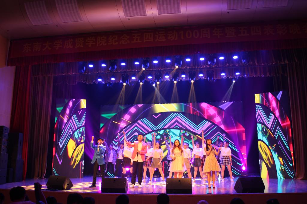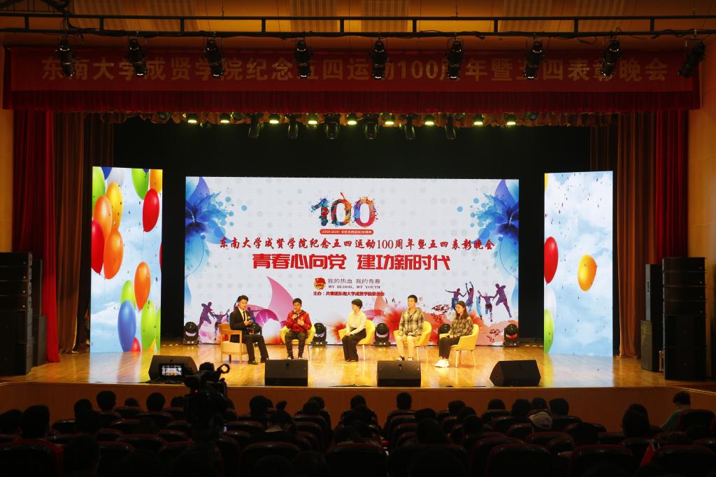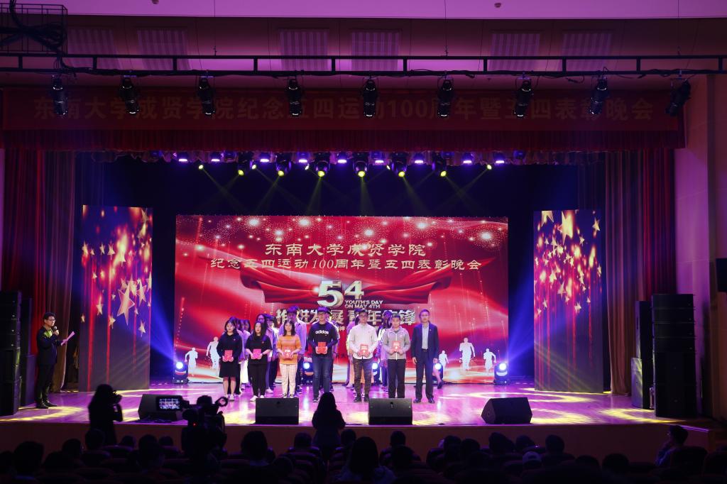 颁奖环节中,校团委邀请了优秀成贤青年代表以“青年·青春·奋斗”为主题进行了访谈,金明霄同学从志愿服务,张悦蔚同学从工学矛盾到境外留学,李柯同学从部队退伍到立志考研,贺振宇同学从专业学习到专利申请不同角度分享了他们的青春故事,用行动诠释了奋斗的意义和青春的价值。最后,大会在活力四射的歌舞《我们都是追梦人》中落下帷幕,歌曲唱出了成贤青年用青春拥抱时代,用生命点燃未来的澎湃激情。