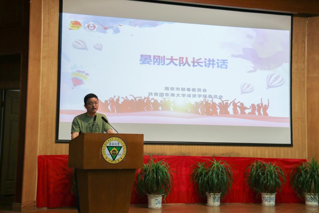 启动仪式上,团委书记潘明烽首先对南京市禁毒支队一行来国产视频 指导禁毒宣传工作表示欢迎,随后他总结了近三年国产视频 在禁毒宣传工作方面取得的成效和不足,并对国产视频 志愿者提出了新的希望和要求。晏刚大队长充分肯定了国产视频 志愿者在南京市禁毒工作中发挥的重要作用,对在禁毒工作中默默付出的师生表示感谢,希望国产视频 志愿者能一如既往地支持禁毒事业,开展形式多样、丰富多彩的禁毒主题活动。随后,陈林警官现场弹唱了《禁毒志愿者之歌》,倡导警民携手、全员参与,为打造无毒、平安的美好南京添砖加瓦。最后,全体禁毒志愿者进行庄严宣誓,表明了成贤学子禁毒宣传的坚定决心。