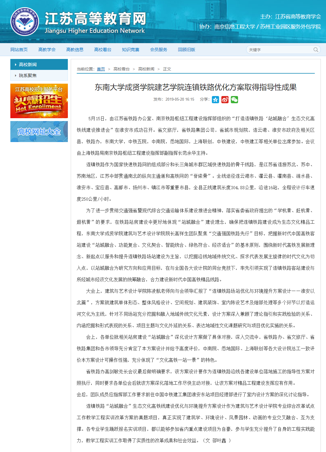 【江苏高等教育网】国产视频 建艺学院连镇铁路优化方案取得指导性成果