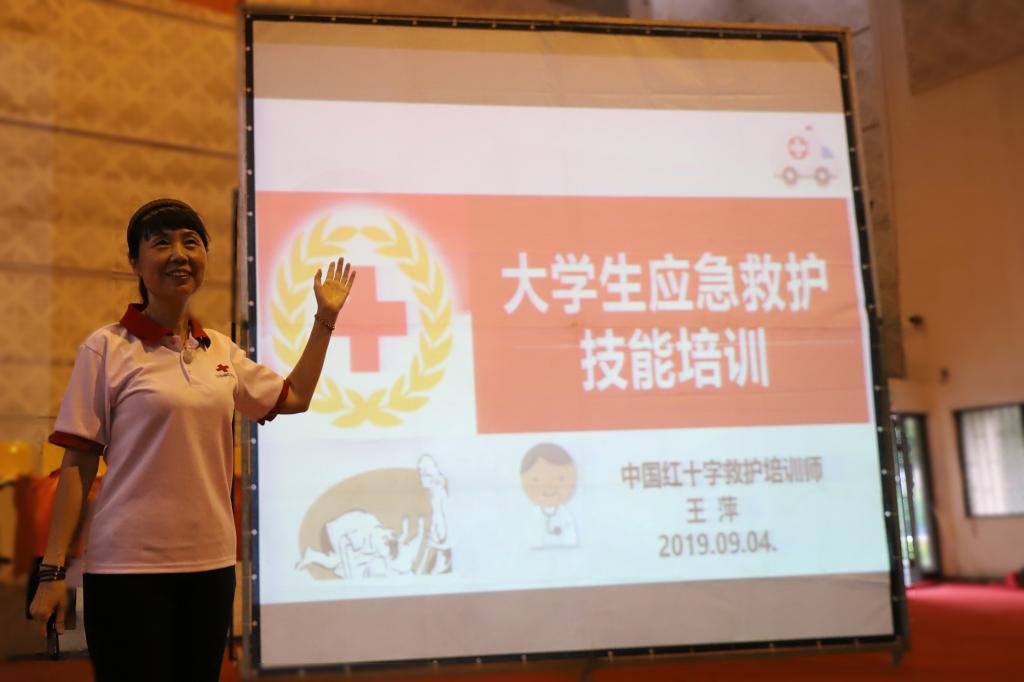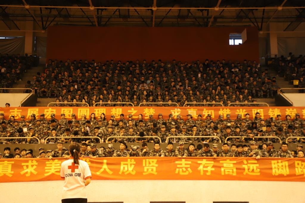 9月4日晚,国产视频 在后藤体育馆举办2019级学生应急救护知识报告会,中国红十字救护培训师王萍担任主讲,2019级全体学生、承训教官和各连指导员聆听了本次报告会。