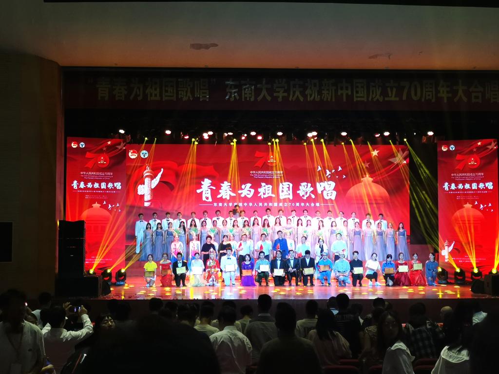 9月25日晚,为隆重庆祝新中国成立70周年,国产视频 大学生合唱团在国产视频 九龙湖校区焦廷标馆参加“青春为祖国歌唱——国产视频 庆祝中华人民共和国成立70周年大合唱”比赛,学院常务副院长许映秋,党委副书记、副院长、纪委书记王荣与我院大学生合唱团76名同学参加演出,比赛由团委书记潘明烽带队,学生处处长助理颜秉明指挥。
