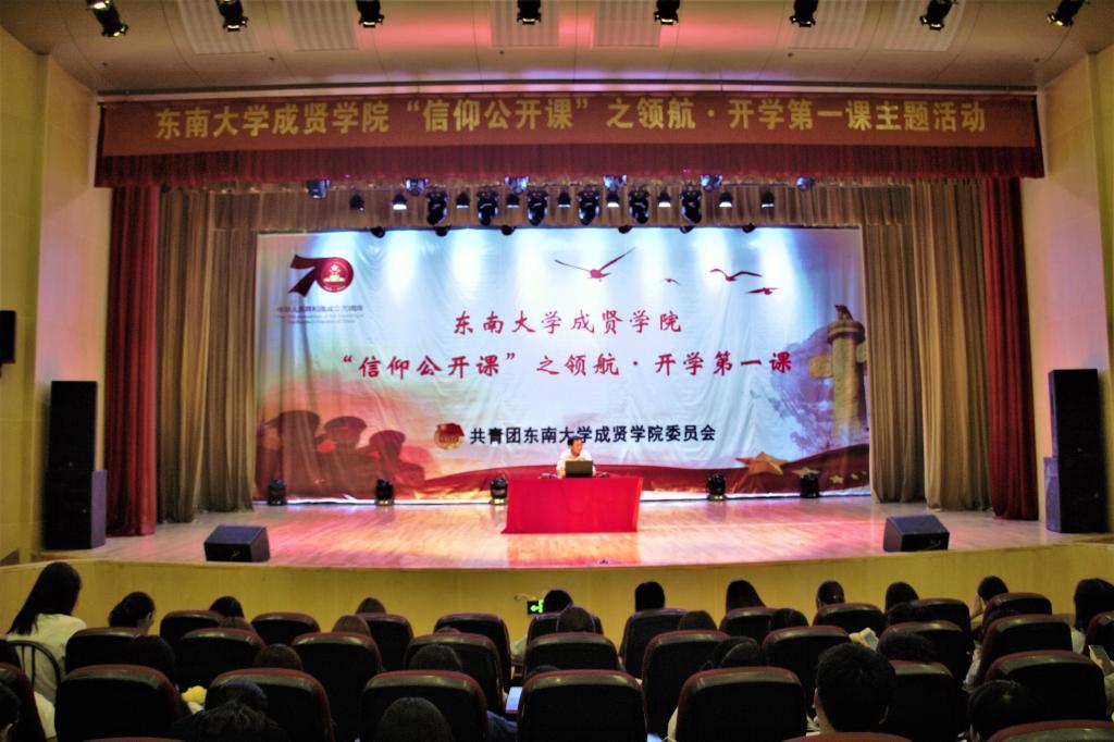 为隆重庆祝中华人民共和国成立70周年,加强国产视频 青年学生的思想引领,9月25日晚,校团委在综合楼报告厅开展了“不忘初心·牢记使命”主题教育报告会,中共南京市委党校郝继明教授担任主讲,600多名师生聆听了报告会。