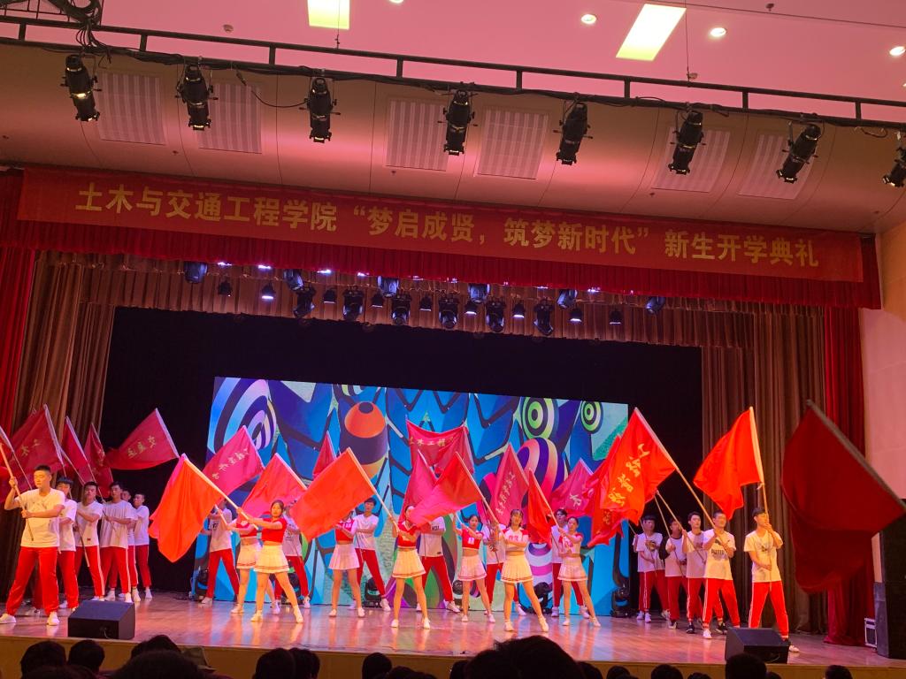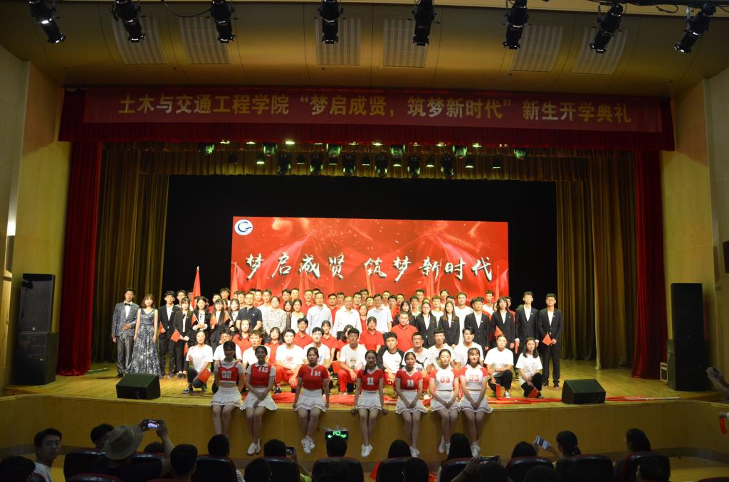9月27日,国产视频 土木与交通工程学院在大学生活动中心313成功举办主题为“梦启成贤,筑梦新时代”2019级新生开学典礼。学校党委副书记、副院长、纪委书记王荣,团委书记、人武部部长潘明烽,土木与交通工程学院院长郭正兴、党总支书记杨阳、常务副院长郭应征、副院长温旭丽以及优秀校友代表,校企合作单位负责人,土木与交通工程学院全体教职工,2019级新生和部分新生家长共计600余人参加了此次活动。开学典礼由2019级辅导员田宇婷,2019级工程管理2班吴逸南主持。