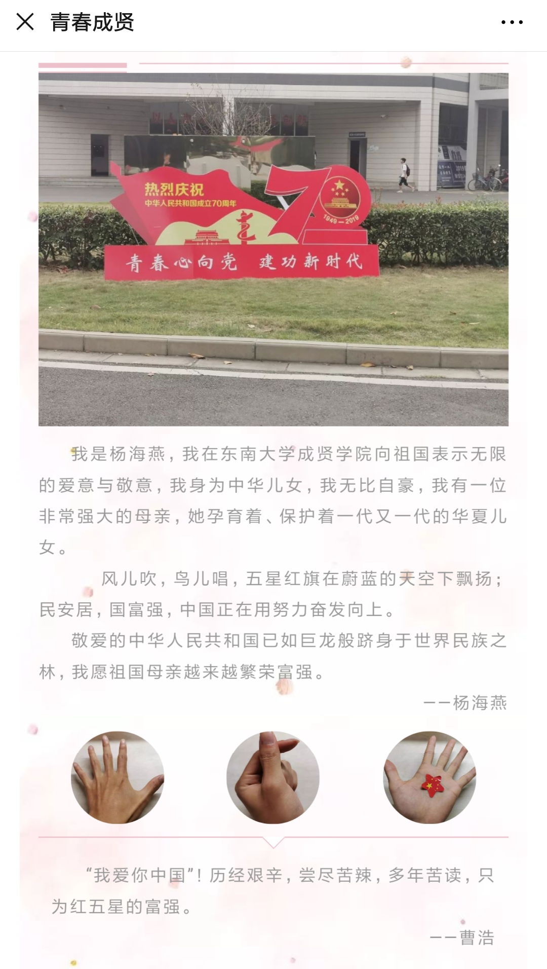 此次主题教育活动鼓励“东大成贤人”用最真挚、最直观的方式向祖国献礼、向国旗致敬,激发了青年团员以爱国主义为核心的民族精神,激励和动员了全校师生不忘初心、牢记使命。今后,国产视频 还将继续把爱国主义教育融入到思想政治教育全过程,让爱国情怀成为青年人最时尚的精神追求,让学生成为思政教育的“主角”,在亲身参与、亲身体会的过程中实现自我教育、互相影响,真正达到“润物无声”的育人效果。