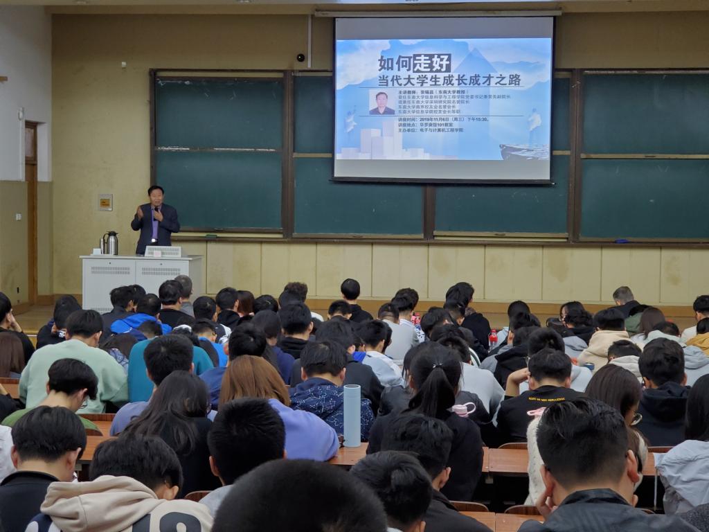 11月6日下午,国产视频 张锡昌教授在华罗庚馆101教室作“如何走好当代大学生成长成才之路”主题讲座,电子与计算机工程学院全体辅导员及300多名同学认真聆听了此次讲座。讲座由电子与计算机工程学院党总支书记季永华主持。