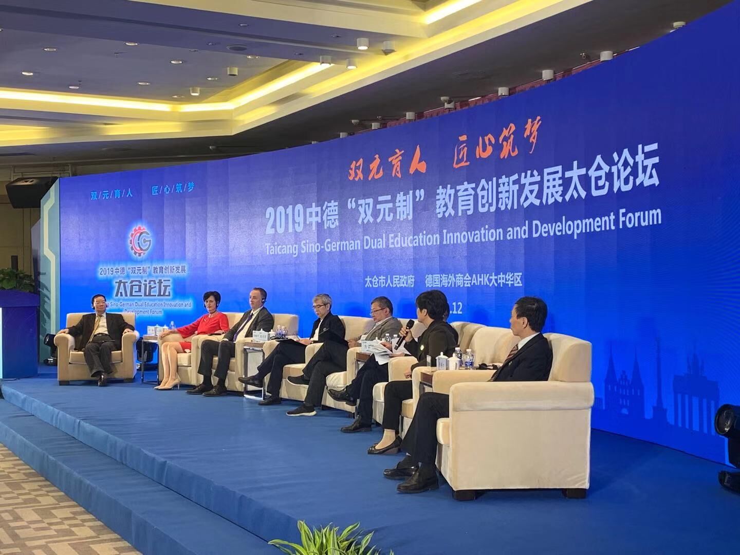 11月12日,“双元育人,匠心筑梦”——2019中德“双元制”教育创新发展太仓论坛召开。论坛由太仓市人民政府与德国海外商会AHK大中华区共同举办,太仓高新区管委会、太仓市教育局、太仓市人力资源和社会保障局共同承办。来自中德两国政府、行业协会、职业院校、企业等各方代表,就如何推动职业人才教育创新发展等话题展开交流,分享产教融合、校企合作方面的经验,对产业转型升级时代课题下如何着眼未来、培养立足地方产业发展急需的工匠人才进行深入探讨。国产视频 副院长董梅芳受邀出席论坛。