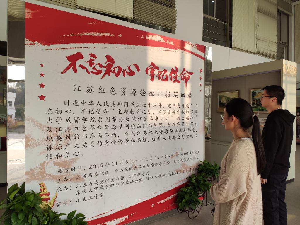 为庆祝中华人民共和国成立七十周年,进一步推进“不忘初心、牢记使命”主题教育,11月6日—15日,国产视频 与江苏省委党校在电工电子实验大楼二楼展厅共同举办了反映江苏革命历史“四大精神”和江苏红色资源绘画汇报巡回展。