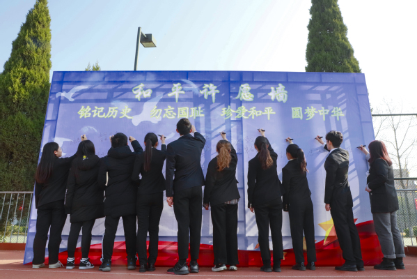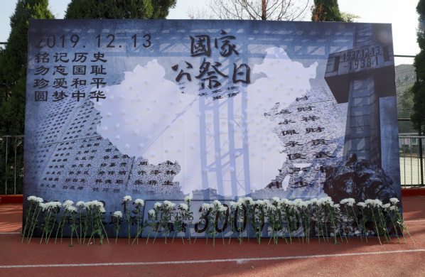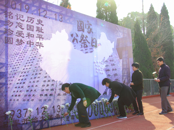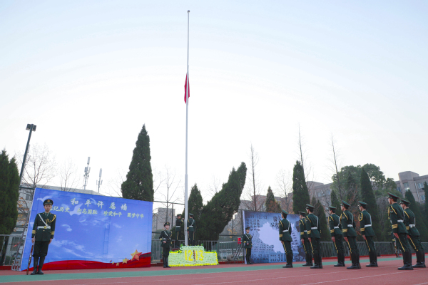 早晨7时整,国旗班在操场举行了升国旗、降半旗仪式,全体成员静默注视,表达对南京大屠杀死难者的哀悼之情。
